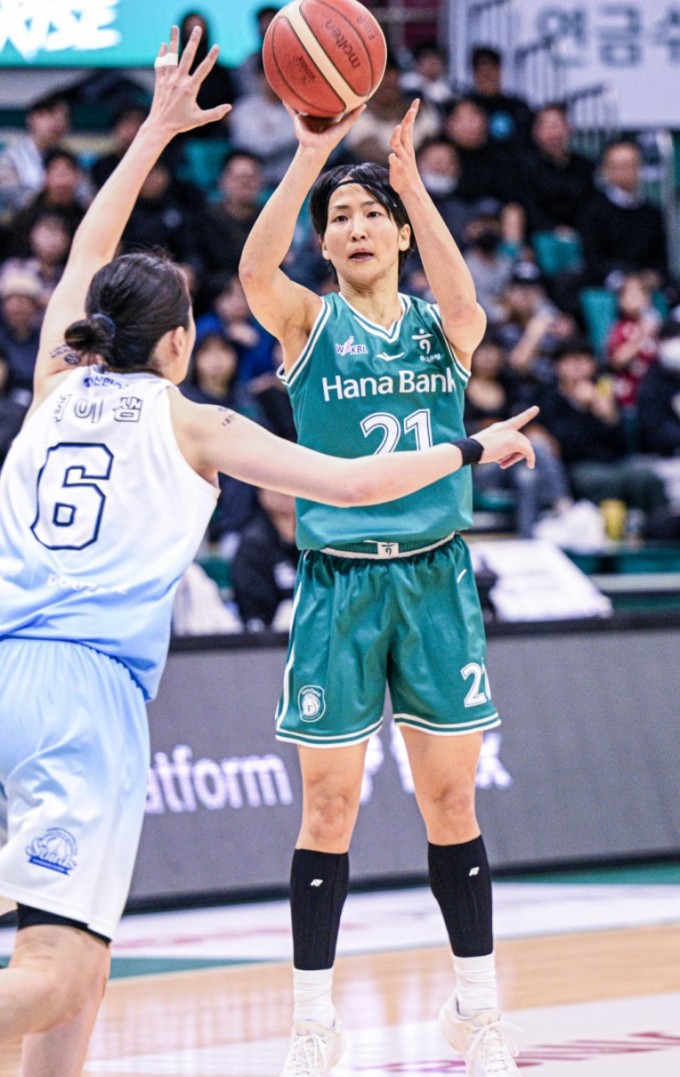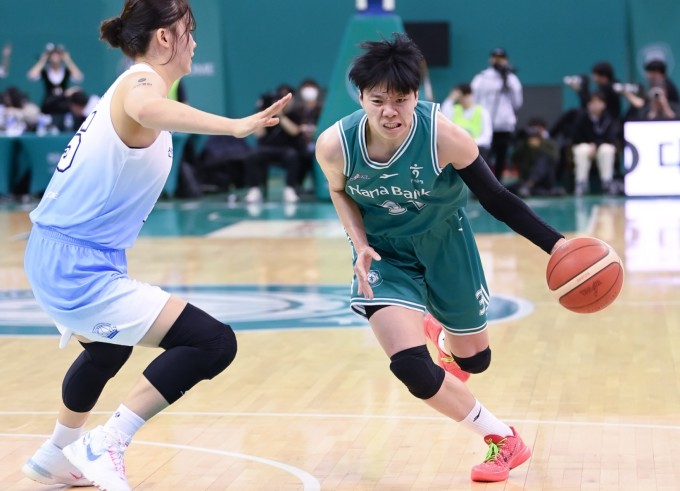 [서울=뉴스핌] 박상욱 기자 = 아시아쿼터 선수 이이지마 사키가 맹활약한 하나은행이 접전 끝에 신한은행을 꺾었다.