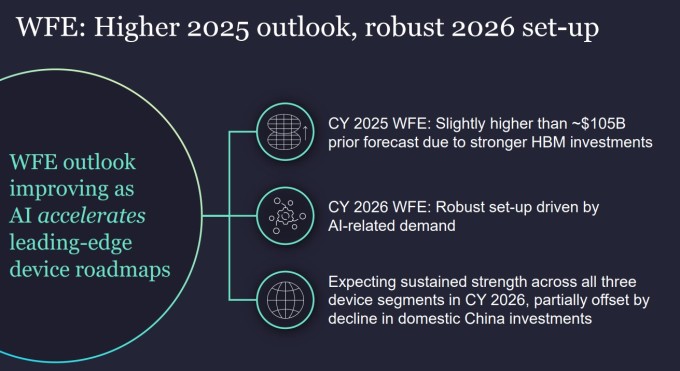 특히 웨이퍼 제조 장비(WFE) 시장은 2026년 12% 성장이 예상되며, 램리서치는 이 분야에서 최대 수혜를 입을 것으로 분석된다. 국제반도체장비재료협회(SEMI)는 16일 보고서에서 AI 열풍으로 반도체 제조 장비 매출이 2026년 9% 증가해 1260억 달러에 이르고, 2027년에 7.3% 추가 상승해 1350억 달러에 달할 것으로 전망했다.