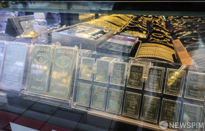 [서울=뉴스핌] 윤창빈 기자 = 미국의 금리 인하와 달러화 약세에 대응한 안전 투자처로 여겨지는 귀금속으로의 투자 수요가 지속되면서 국제 은(銀) 가격이 급등했다. 26일(현지시간) 뉴욕상업거래소에서 3월 인도분 은 선물 종가는 온스당 77.20달러로 전 거래일보다 7.7% 상승했다. 이는 은 현물 가격이 장중 온스당 77.40달러로 치솟으며 사상 최고치를 경신한 것이다. 또한, 2월 인도분 금 선물 종가는 온스당 4,552.70달러로 1.1% 상승하며 금 가격도 상승세를 보였다. 이날 서울 종로구 귀금속점에 진열된 골드바와 실버바의 모습. 2025.12.27 pangbin@newspim.com