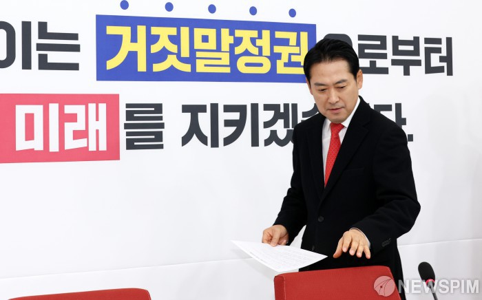 [서울=뉴스핌] 최지환 기자 = 장동혁 국민의힘 대표가 28일 오전 서울 여의도 국회에서 열린 기자간담회에 입장하고 있다. 2025.12.28 choipix16@newspim.com