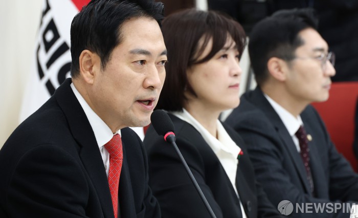 [서울=뉴스핌] 최지환 기자 = 장동혁 국민의힘 대표가 28일 오전 서울 여의도 국회에서 열린 기자간담회에서 발언하고 있다. 2025.12.28 choipix16@newspim.com