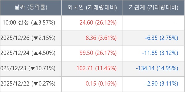 [표] 외국인ㆍ기관 순매매량 (단위 만주)
