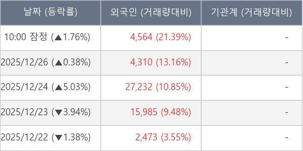 [표] 외국인ㆍ기관 순매매량 (단위 주)