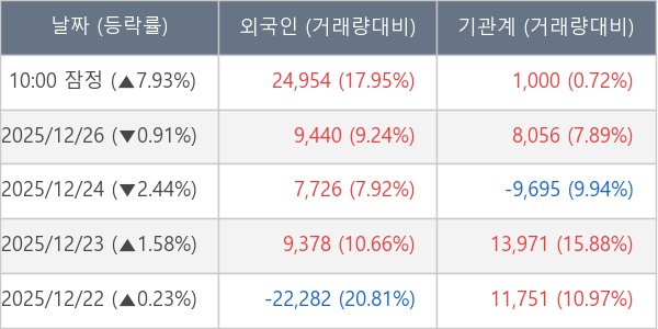 ※ 사모펀드 등 일부 기관의 순매매량은 표시되지 않음