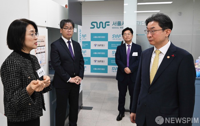 [서울=뉴스핌] 양윤모 기자 = 이억원 금융위원장이 29일 오전 서울 동작구 서울금융복지상담센터 동작센터에서 개최된 불법사금융 근절 현장 간담회에 참석에 앞서 현장 관계자를 격려하고 있다. 2025.12.29 yym58@newspim.com