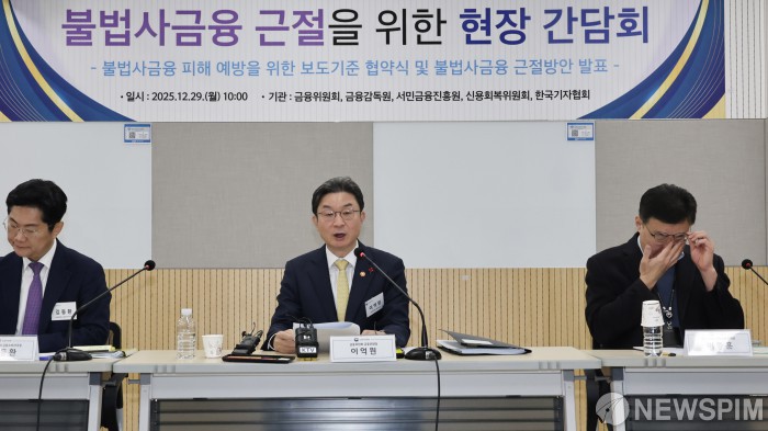 [서울=뉴스핌] 양윤모 기자 = 이억원 금융위원장이 29일 오전 서울 동작구 서울금융복지상담센터 동작센터에서 개최된 불법사금융 근절 현장 간담회에 참석해 발언을 하고 있다. 정부는 불법사금융예방대출 금리 부담을 현행 15.9%에서 5~6%로 대폭 인하해 서민·취약계층이 불법사금융을 찾지 않도록 정책서민금융 지원을 강화할 계획이다. 2025.12.29 yym58@newspim.com