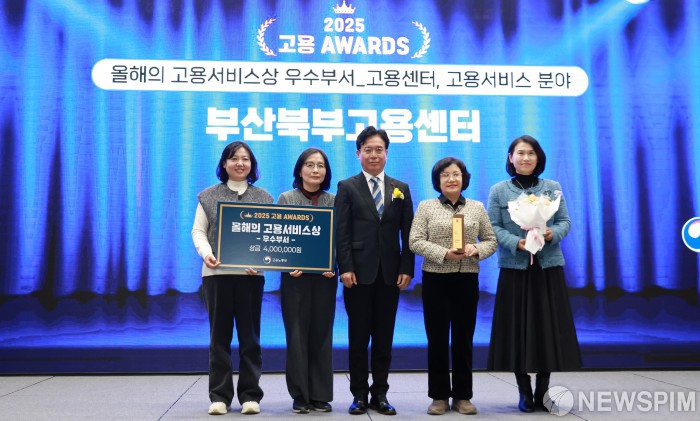 [서울=뉴스핌] 김영훈 고용노동부 장관이 29일 오후 청주 오스콘 컨벤션센터에서 열린 올해의 고용서비스상 시상식에서 상패를 전달하고 수상자들과 기념촬영을 하고 있다. [사진=고용노동부] 2025.12.29 photo@newspim.com