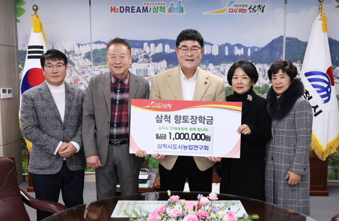 삼척시도시농업연구회, 향토장학금 100만 원 기탁.[사진=삼척시] 2025.12.29 onemoregive@newspim.com