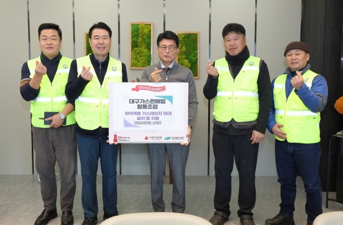 [대구=뉴스핌] 김용락 기자=대구가스판매업협동조합은 연말을 맞아 취약계층을 위해 500만원 상당의 LPG 가스레인지를 대구 북구청에 전달했다고 29일 밝혔다.