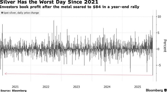 지난주 26일 CME는 은과 금을 포함한 금속 선물계약의 증거금을 29일부터 인상(개시 증거금 약 25% 인상 등)한다고 공지했다. 발표 자체는 26일이었지만 29일이 공지 이후 첫 정규 거래일인 동시에 증거금 인상 시행 전 낮은 증거금으로 포지션을 청산할 마지막 날이었다.
