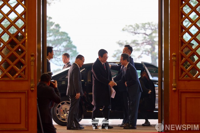 [서울=뉴스핌] 이재명 대통령이 지난 29일 서울 종로구 청와대에 첫 출근을 하고 있다. [사진=청와대] 2025.12.30 photo@newspim.com