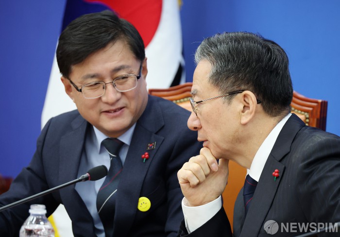 [서울=뉴스핌] 정일구 기자 = 김성환 기후에너지환경부 장관관 정성호 법무부 장관이 30일 오전 서울 여의도 국회에서 열린 경제형벌 민사책임 합리화 제2차 당정협의에서 대화하고 있다. 2025.12.30 mironj19@newspim.com