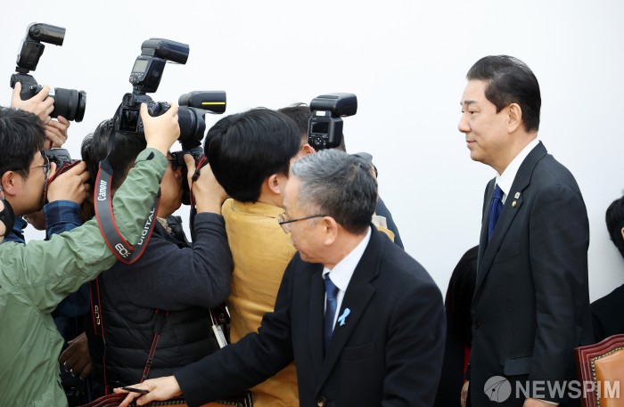 [서울=뉴스핌] 정일구 기자 = 김병기 더불어민주당 원내대표가 30일 오전 서울 여의도 국회에서 열린 원내대책회의에서 원내대표직 사퇴 의사를 밝힌 뒤 회의장을 나서고 있다. 2025.12.30 mironj19@newspim.com