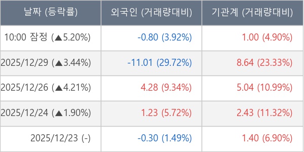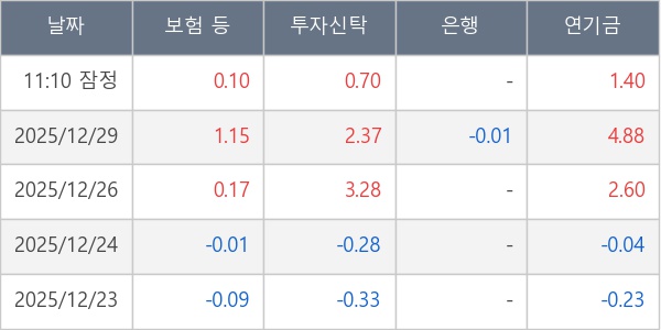 [표] 주요 기관별 순매매량 (단위 만주)
