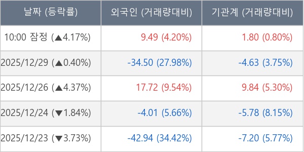 ※ 사모펀드 등 일부 기관의 순매매량은 표시되지 않음
