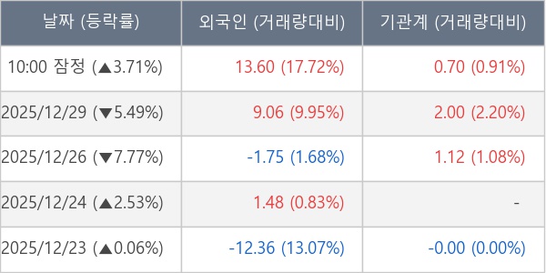 ※ 사모펀드 등 일부 기관의 순매매량은 표시되지 않음