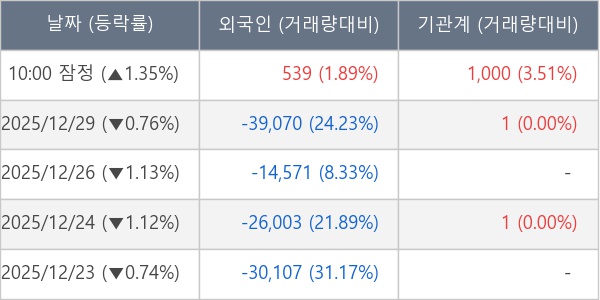 ※ 사모펀드 등 일부 기관의 순매매량은 표시되지 않음