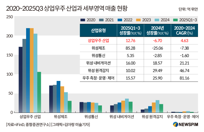 실적 펀더멘털(기초체력) 측면에서도 올해 들어 상업우주 산업체인 전반이 우수한 실적 회복세를 기록한 가운데, 그 중에서도 위성제조 산업은 눈에 띄는 성장세를 기록했다.