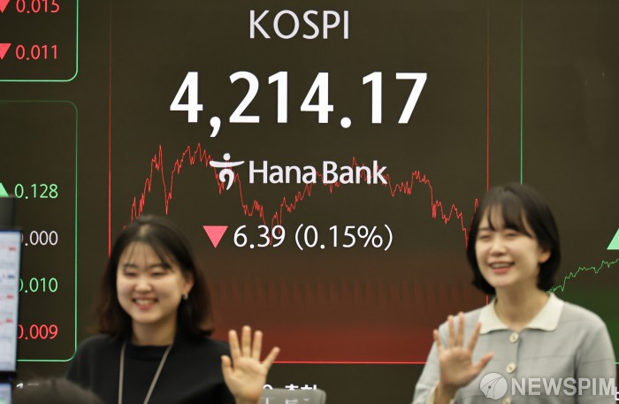 [서울=뉴스핌] 양윤모 기자 = 2025년 증시폐장일인 30일 오후 코스피가 전장 종가보다 6.39 포인트(0.15%) 하락하며 4214.17로, 코스닥은 7.12 포인트(0.76%) 하락한 925.47로 장을 마감한 가운데, 서울 중구 하나은행 딜링룸에서 직원들이 업무를 보고 있다. 서울외환시장에서 달러/원 환율은 전장 대비 11.40원 상승한 1441.20원에 주간거래를 마감했다. 2025.12.30 yym58@newspim.com