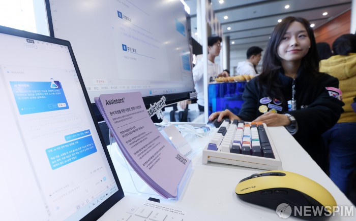 [서울=뉴스핌] 최지환 기자 = 30일 오후 서울 강남구 코엑스에서 열린 '독자 AI 파운데이션 모델' 프로젝트 1차 발표회 부스에서 LG AI연구원 관계자가 시연을 하고 있다. 2025.12.30 choipix16@newspim.com