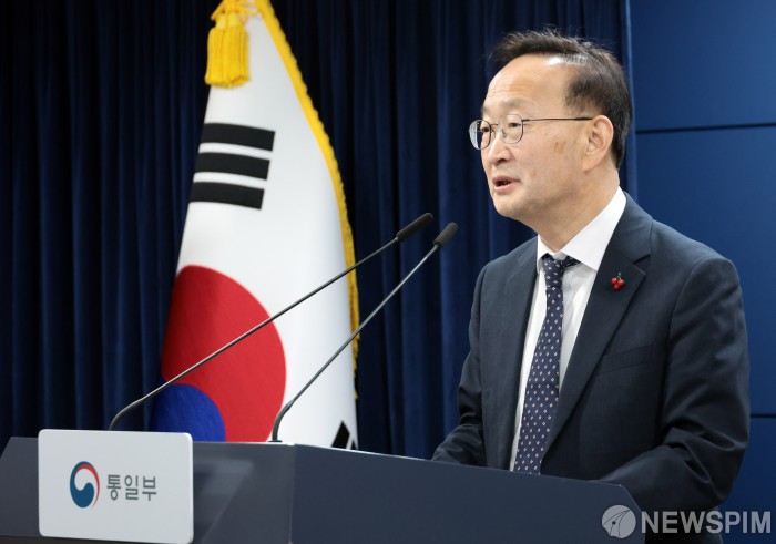 [서울=뉴스핌] 이길동 기자 = 김남중 통일부 차관이 30일 서울 종로구 정부서울청사에서 현안 관련 브리핑을 하고 있다. 김 차관은 노동신문의 대국민 개방 사안과 관련해 “오늘부터 특수자료 취급기관을 방문하면 별도 신청절차 없이 일반 간행물과 동일하게 노동신문의 열람이 가능하며, 탈북민 호칭과 관련 2026년부터 북한이탈주민에 대한 인식개선과 사회통합 강화 차원에서 북향민 명칭을 사용”한다고 말했다. 2025.12.15 gdlee@newspim.com