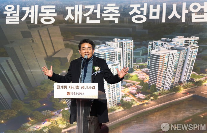[서울=뉴스핌] 오승록 노원구청장이 30일 오후 서울 노원구 월계동 재건축정비사업 착공식에 참석해 축사를 하고 있다. 월계동 487-17일대(대지면적 약 1만5천㎡)는 1998년과 2001년 50% 이상의 가구가 침수 피해를 입어 2005년 서울시에서 처음 재해관리구역으로 지정된 곳이다. 해당 단지는 최고 20층의 5개 동, 총 355세대의 공동주택이 건립된다. 주민편의시설로서 작은 도서관과 운동시설이 설치되며, 기부채납 공원을 인접한 월계동신아파트 재건축사업과 연계해 하나로 조성되는 등 주거환경이 크게 개선될 전망이다. [사진=노원구청] 2025.12.30 photo@newspim.com