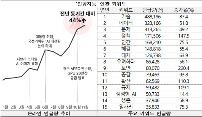 ◆인공지능 언급량 전년 같은 기간 대비 44% 증가, 인공지능 확산 속 '인간 중심 전환' 요구