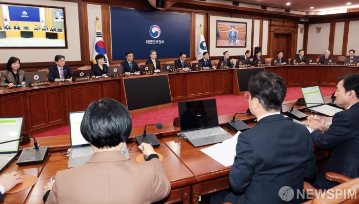 [서울=뉴스핌] 이길동 기자 = 김민석 국무총리가 31 서울 종로구 정부서울청사에서 열린 임시 국무회의를 주재하고 있다. 2025.12.31 gdlee@newspim.com