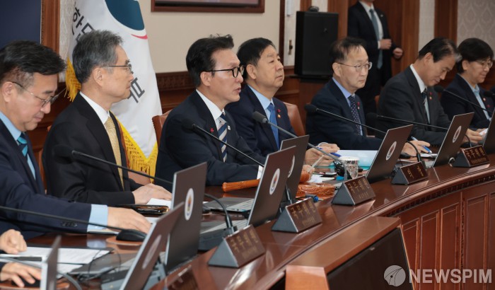 [서울=뉴스핌] 이길동 기자 = 김민석 국무총리가 31 서울 종로구 정부서울청사에서 열린 임시 국무회의를 주재하며 모두 발언을 하고 있다. 2025.12.31 gdlee@newspim.com