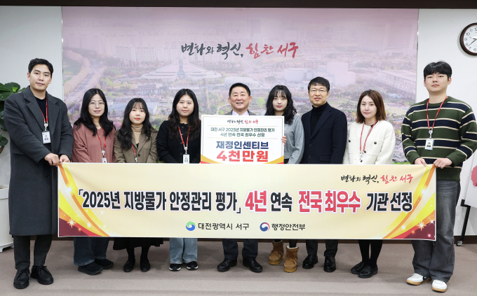 [대전=뉴스핌] 오종원 기자 = 대전 서구는 행정안전부 주관 '지방 물가 안정 관리 평가'에서 4년 연속 최우수 기관으로 선정됐다고 31일 전했다.
