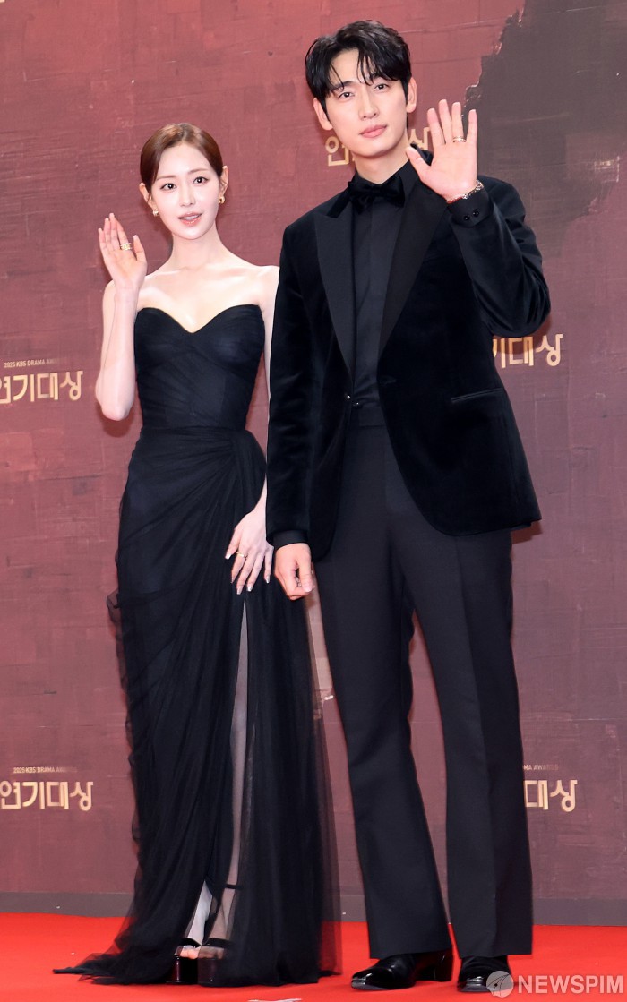 [서울=뉴스핌] 정일구 기자 = 배우 신슬기, 윤박이 31일 오후 서울 영등포구 KBS 웨딩홀에서 열린 2025 KBS 연기대상 레드카펫에서 포즈를 취하고 있다. 2025.12.31 mironj19@newspim.com