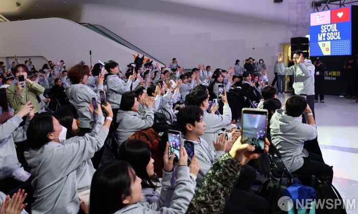 [서울=뉴스핌] 최지환 기자 = 오세훈 서울시장이 31일 오후 서울 중구 동대문디자인플라자에서 열린 2025 서울콘 크리에이티브포스 어워즈에 입장하며 참석자들과 인사하고 있다. 2025.12.31 choipix16@newspim.com
