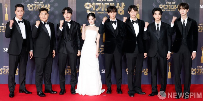 [서울=뉴스핌] 류기찬 기자 = 드라마 '트라이' 출연진들이 31일 오후 서울 마포구 SBS프리즘타워에서 열린 ‘2025 SBS 연기대상 시상식 포토월’에서 포즈를 취하고 있다. 2025.12.31 ryuchan0925@newspim.com