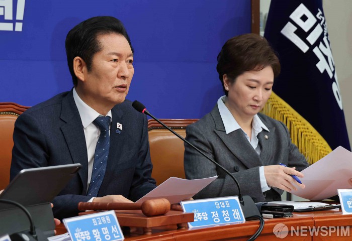 [서울=뉴스핌] 윤창빈 기자 = 정청래 더불어민주당 대표가 2일 서울 여의도 국회에서 열린 최고위원회의에서 모두발언을 하고 있다. 2026.01.02 pangbin@newspim.com