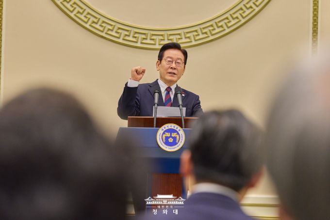 [서울=뉴스핌] 박성준 기자 = 이재명 대통령은 새해 첫 근무일인 2일 오전 청와대 영빈관에서 청와대 전 직원을 대상으로 시무식을 개최했다.