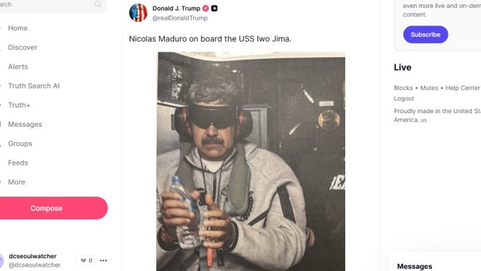 트럼프 대통령은 3일(현지시간) 자신의 소셜미디어 '트루스 소셜'에 "니콜라스 마두로가 USS 이오지마 함에 탑승했다"는 문구와 함께 사진 한 장을 게시했다.