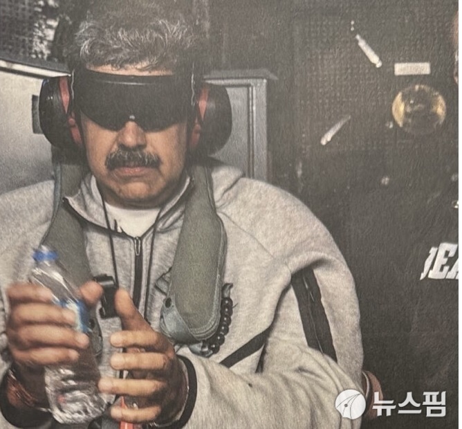 베네수엘라의 니콜라스 마두로 대통령이 2026년 1월3일 미군에 의해 체포돼 눈 가리고 수갑 찬 상태로 이송되고 있다 [사진=도널드 트럼프 미국 대통령의 트루스소셜 계정]