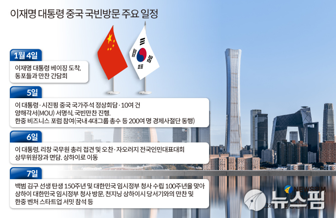 특히 매체들은 이재명 대통령의 중국에서의 일정을 적극 보도하고 있다. 매체들은 이 대통령이 시진핑 주석과 정상회담과 국빈 만찬을 진행하며, 6일에는 상하이로 이동할 것이라고 보도했다.