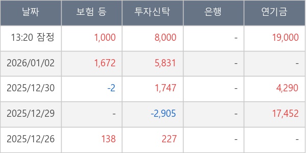 ※ 사모펀드 등 일부 기관의 순매매량은 표시되지 않음