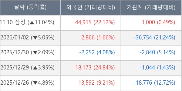 [장중수급포착] 태웅, 외국인/기관 동시 순매수… 주가 +11.04%