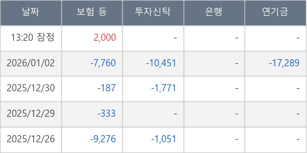 ※ 사모펀드 등 일부 기관의 순매매량은 표시되지 않음