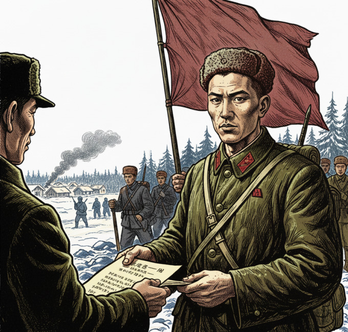 중국 공산당은 이와 같은 과정을 거쳐 코민테른 지시대로 항일민족전선 결성을 위해 1936년 4월부터 오의성 부대와 접촉하기 시작하여 8월에 양군(동북항일연군, 오의성 부대) 총합 2,000여 명의 병력으로 합동작전을 펼쳐 무송현성(撫松縣省)을 공격하여 만주군을 격멸했다. 이때 김성주는 동북항일연군으로 전속(轉屬: 원적을 바꾸어 소속을 바꿈)하였다. 전속부대는 동북항일연군 제1로군 제2군 제6사였다.