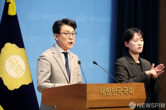 [서울=뉴스핌] 정일구 기자 = 진성준 더불어민주당 원내대표 후보가 5일 오후 서울 여의도 국회 소통관에서 원내대표 보궐선거 정책·공약을 발표하고 있다. 2026.01.05 mironj19@newspim.com