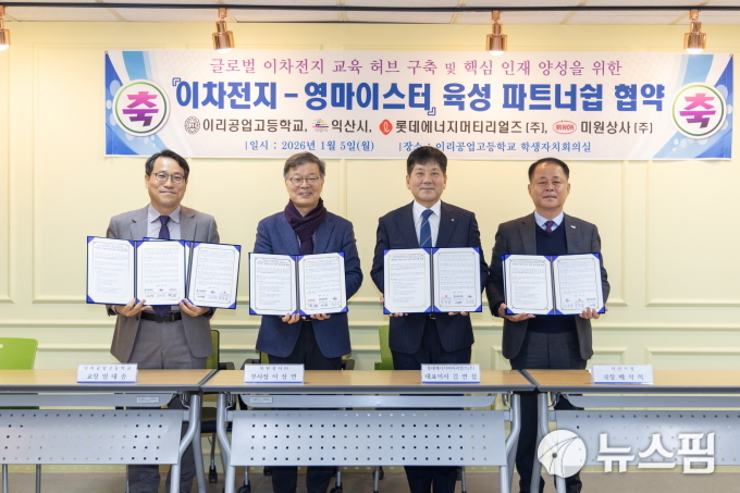 협약에는 익산시와 이리공고를 비롯해 롯데에너지머티리얼즈㈜, 미원상사㈜, ㈜한솔케미칼 등 이차전지 핵심 소재 기업이 참여했다. 이들은 교육 자원 공유, 실습 인프라 확충, 현장 맞춤형 교육과정을 함께 설계하며 인재 양성의 실질적 지원 체계를 구축한다.