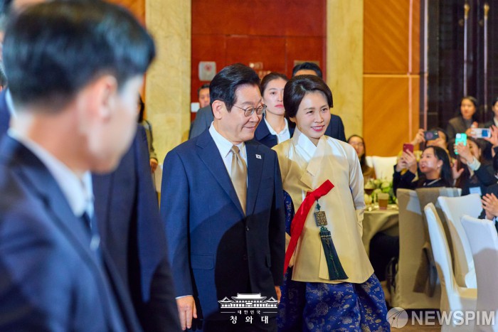 [서울=뉴스핌] 이재명 대통령과 김혜경 여사가 지난 4일 중국 베이징의 한 호텔에서 열린 재중 한국인 간담회에 참석 하고 있다. [사진=청와대] 2026.01.06 photo@newspim.com