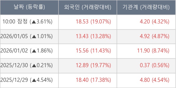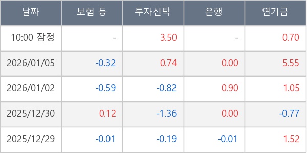 [표] 주요 기관별 순매매량 (단위 만주)