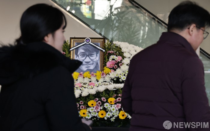 [서울=뉴스핌] 양윤모 기자 = 6일 서울 중구 초동 서울영화센터에 마련된 고(故) 안성기 배우 추모 공간을 찾은 시민들이 마지막 인사를 하고 있다. 2026.01.06 yym58@newspim.com