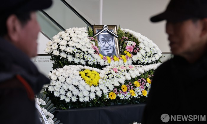 [서울=뉴스핌] 양윤모 기자 = 6일 서울 중구 초동 서울영화센터에 마련된 고(故) 안성기 배우 추모 공간을 찾은 시민들이 마지막 인사를 하고 있다. 2026.01.06 yym58@newspim.com