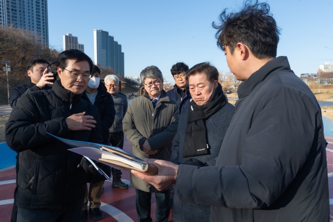 박승원 광명시장은 지난 5일 지난해 12월 조성을 완료한 안양천 지방정원 시범사업구간을 찾아 정원 조성 결과와 이용 현황을 살펴보고, 향후 본 공사 구간의 조성·운영 방향을 논의했다.