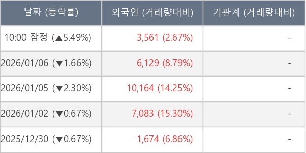 [표] 외국인ㆍ기관 순매매량 (단위 주)